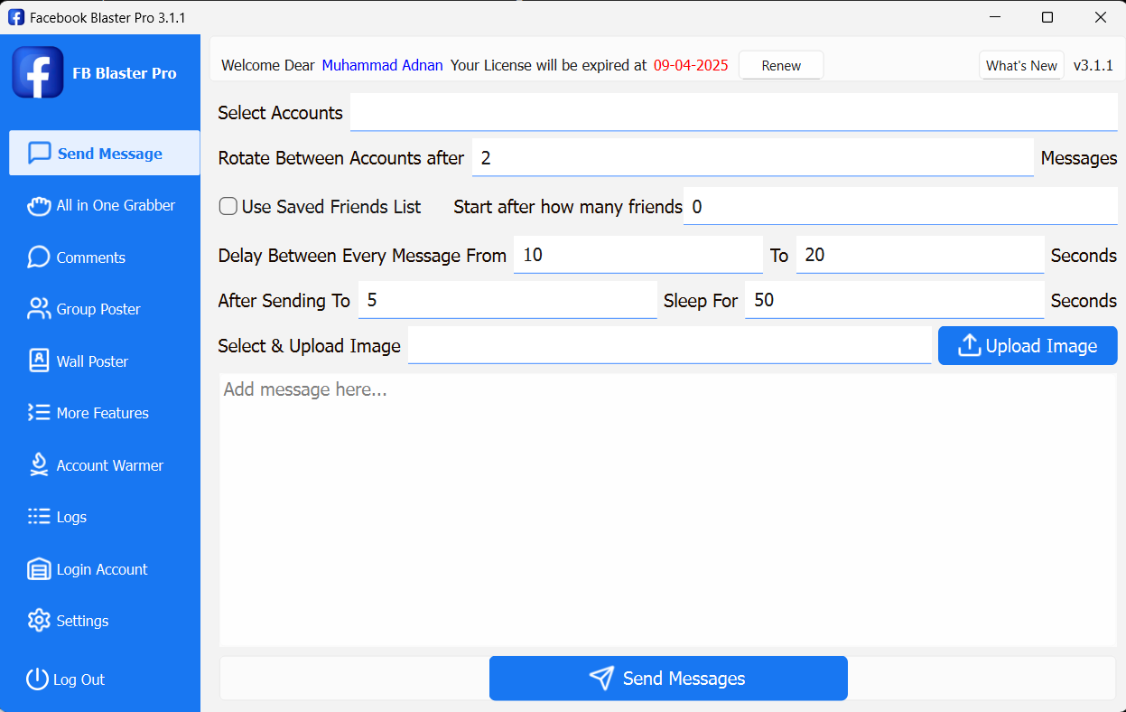 - After logging in, the software will be ready for you to access its core functions, such as collecting profile IDs, sending bulk messages, posting content, and managing groups.